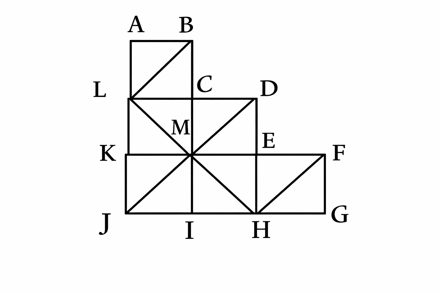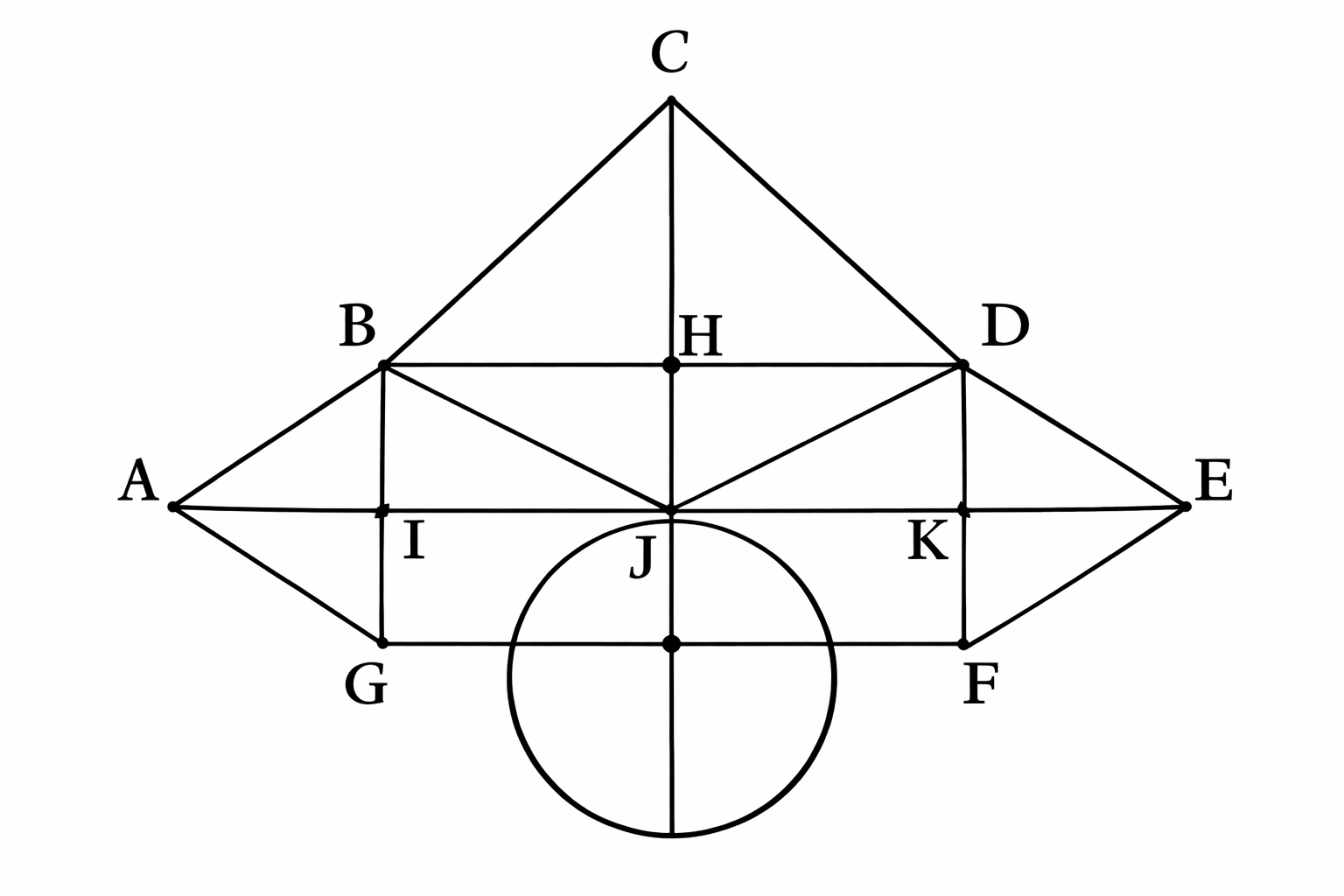 △ABI, △AGI, △ABG, △BCH, △CDH, △BCD, BHJ, △HDJ, BDJ, BJI, △DJK, △DEK, △EFK, △DEF.
